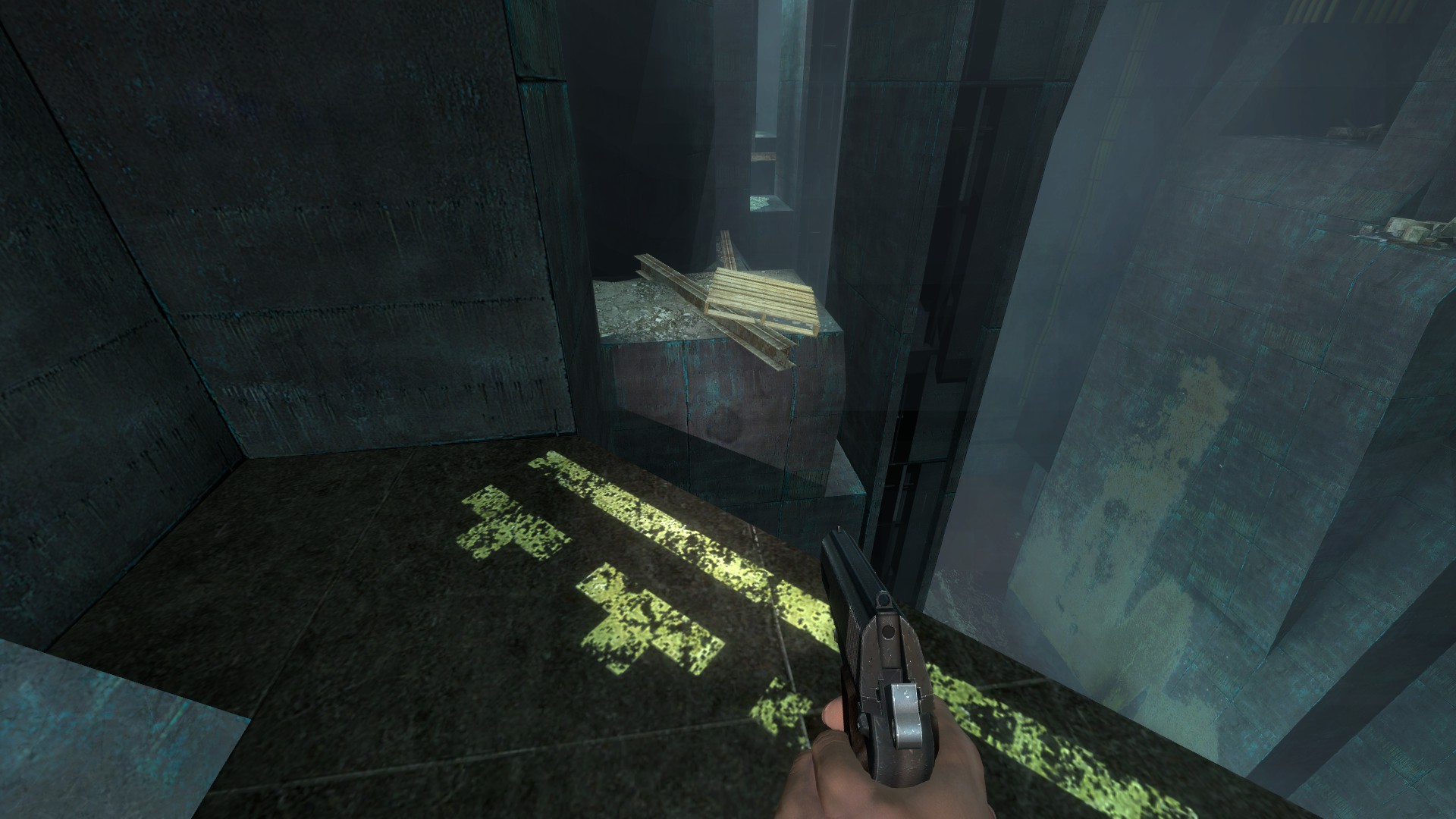 Vous voilà dans un autre bâtiment. Suivez le couloir en dégageant le chemin et en passant sous les planches.