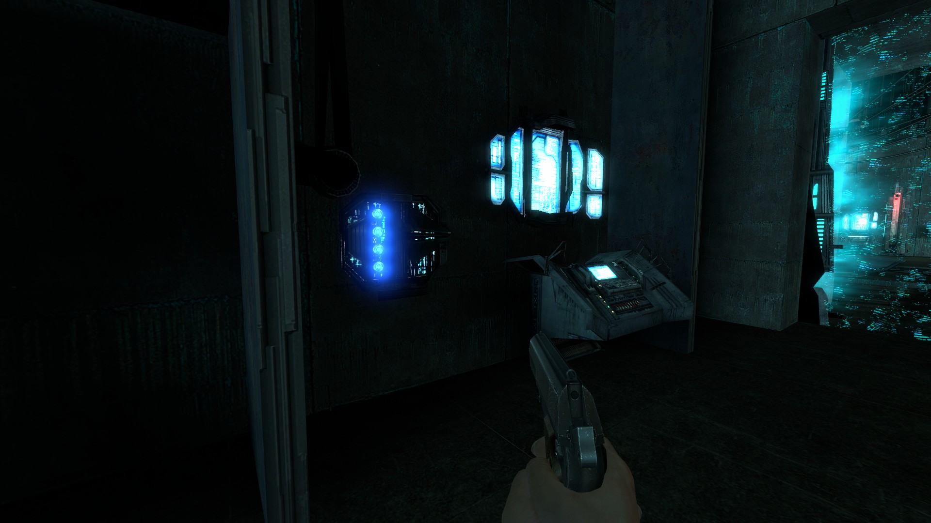 Appuyez sur l'ordinateur pour activer l'ouverture de la porte et arriver dans le compresseur de la citadelle.