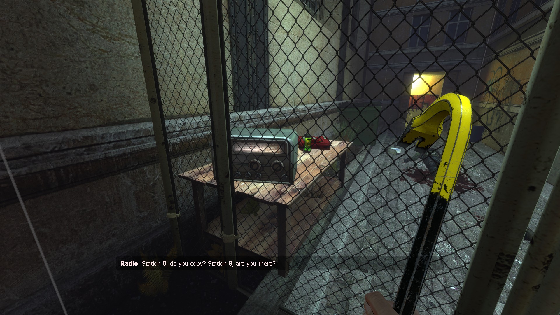 Après la dernière hallucination, la grille est ouverte avec des caisses bloquant l'accès à la prison.